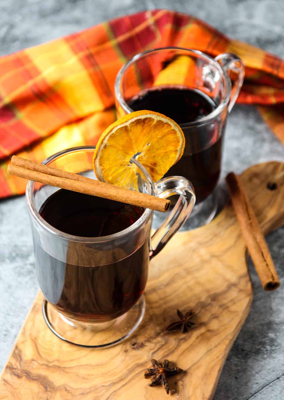 - Serve garnished with apple slices for cider, or orange slices for wine.